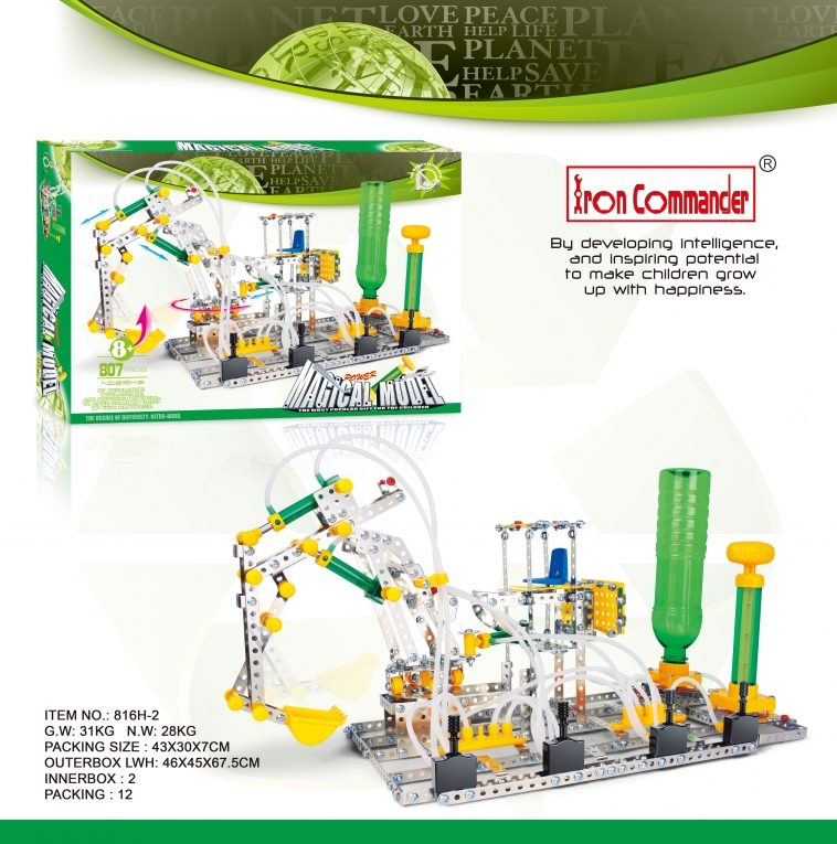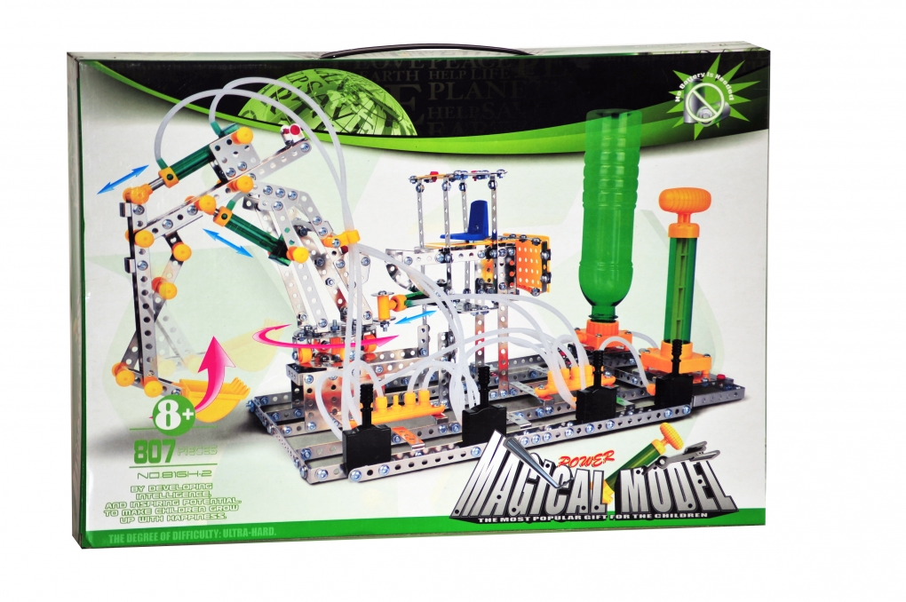 Leerzaam model met lucht techniek welke is op te bouwen uit 807 onderdelen.