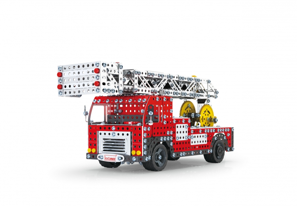 De brandweerwagen heeft een uitschuifbare ladder met persoon bakje, deze schuift uit door te draaien aan een schijf.
