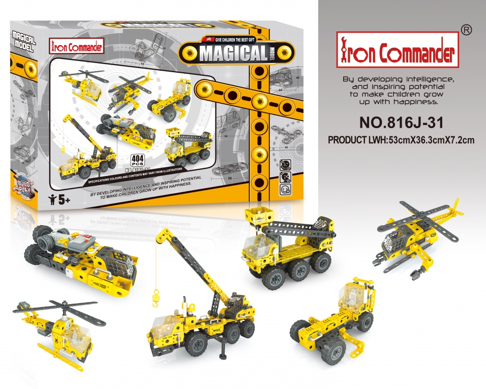 Leuke set stevig kunststof constructie speelgoed met de keuze uit 6 verschillende modellen te bouwen uit 404 onderdelen.