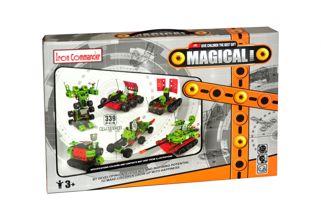 Leuke set stevig kunststof constructie speelgoed met de keuze uit 6 verschillende modellen te bouwen uit 339 onderdelen.